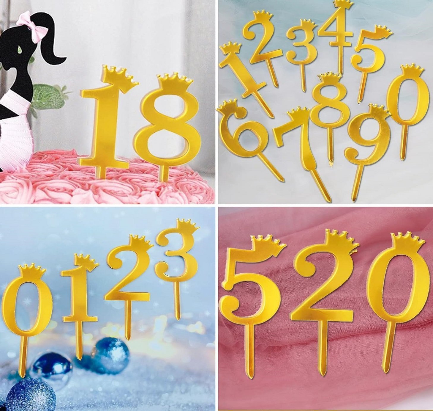 - Perfect Size These gold acrylic cake toppers (0-9) are about 12cm and suitable for most size cakes. You can dial any number according to your desires.