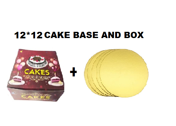 Introducing our 12*12 round golden paper cake base and random design box combo set, perfect for showcasing your delicious creations. This combo set includes a sturdy cake base and a matching random design box, designed to hold a 1.5 to 2kg cake