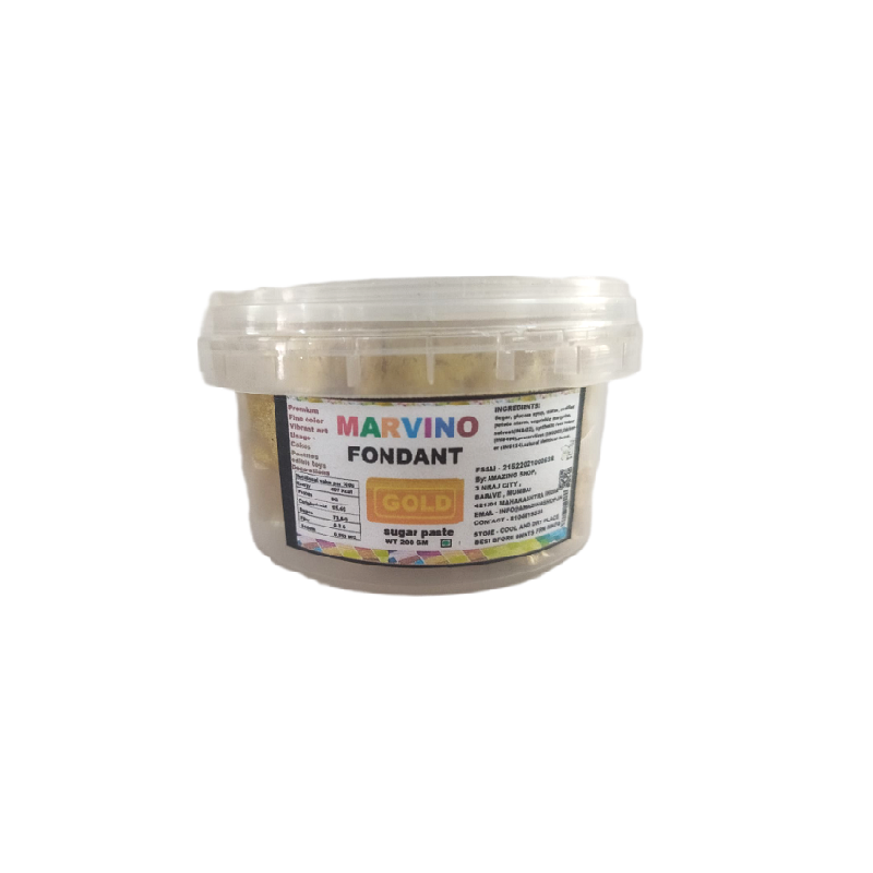 Sugar Paste Gold Fondant used to make simple decorations and models, it is used to create different Colors and Shades, easy to Roll and Shape and offers a melt-in-your-mouth taste with unmatched pliability making it easy to use and full of good shelf life
