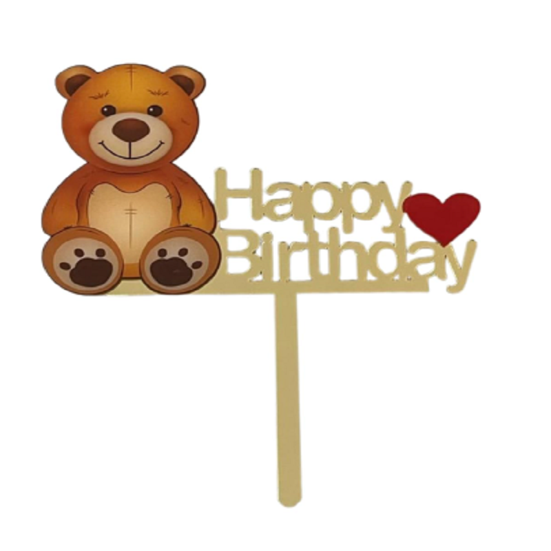 • Golden acrylic 3d cake toppers kids theme teddy bear pack of 1. Cake toppers have exclusive designs which makes your cake look lively and beautiful.
