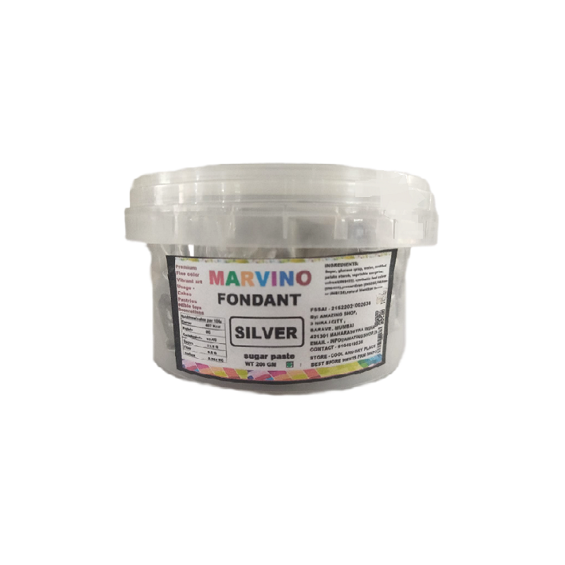 Sugar Paste Silver Fondant used to make simple decorations and models, it is used to create different Colors and Shades, easy to Roll and Shape and offers a melt-in-your-mouth taste with unmatched pliability making it easy to use and full of good shelf life